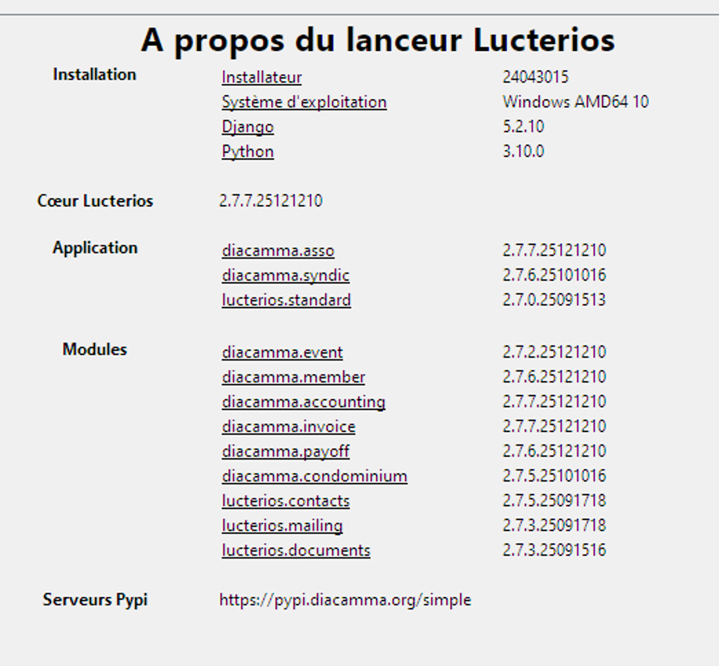 voici les version de mon installation