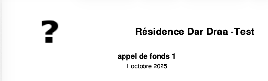 Afin d’éditer/envoyer un appel de fond pour un copropriétaire le rapport généré avec le modèle “Appel de Fond” a l’entête incomplète :